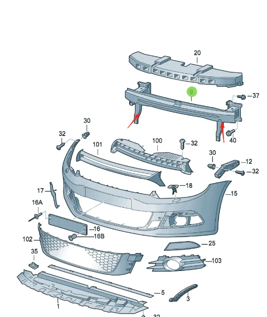 Volkswagen Scirocco Front Bumper Anti-Collision Beam OEM 1K8807109B Iron Frame for 09-18 Models Welcome to support us more, bulk purchases come with discounts.